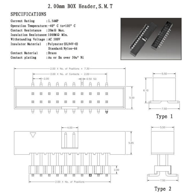 简牛2.00mm BOX Header, S.M.T