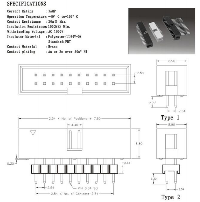 牛角/简牛SPEC:2.54mm BOX Header, Straight