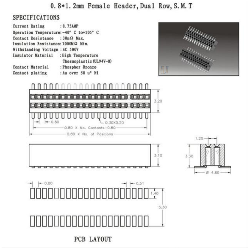 排母0.8*1.2mm Female HeaderDual RowS.M.T