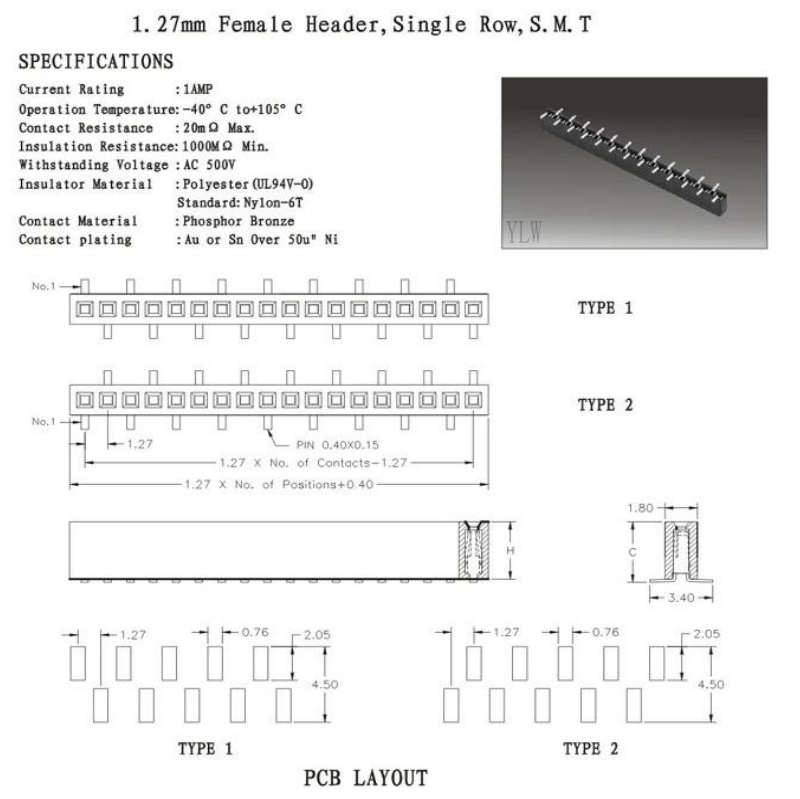 排母1.27.Female Header,Single Row, S.M.T