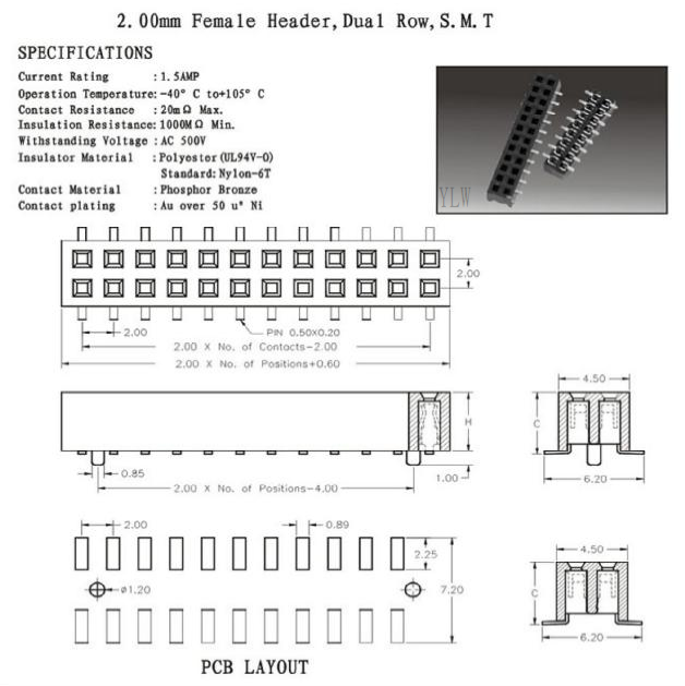 排母2.00mm Female Header, Dual Row, S.M.T