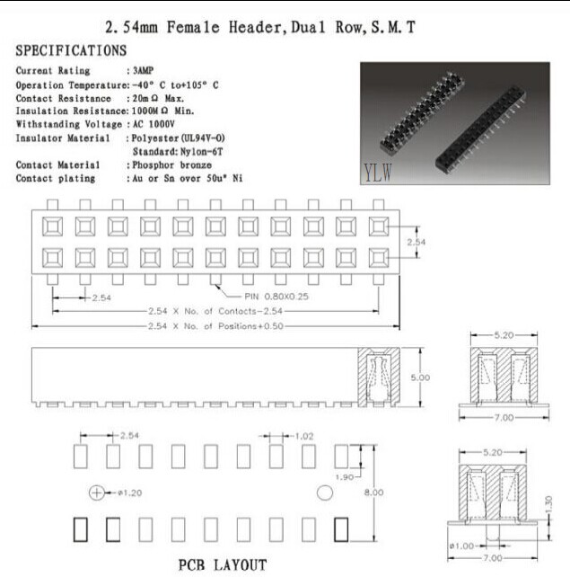 排母2.54mm Feamale Header,Dual Row, S.M.T