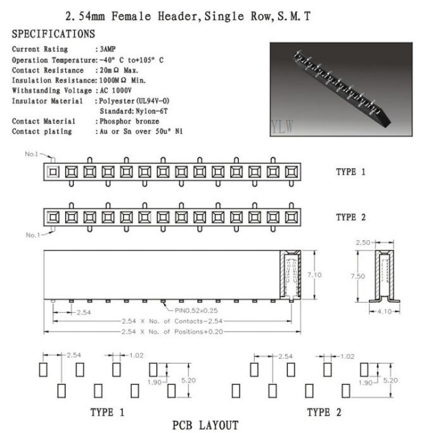 排母2.54mm Feamale Header,Single Row, S.M.T