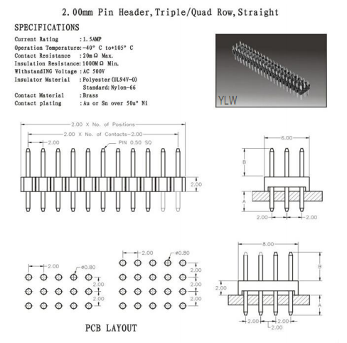 排针2.00mm Pin Header,Triple,Quad Row,Straight