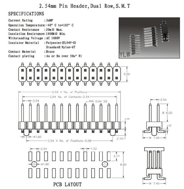 排针2.54mm Pin Header,Dual Row,S.M.T
