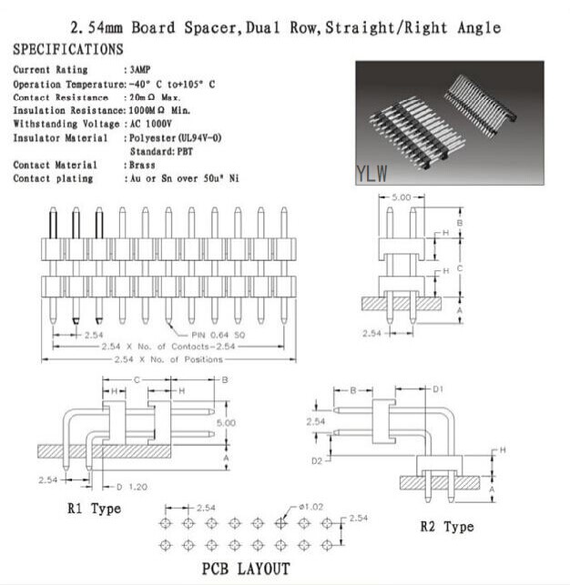 排针2.54mm Board Spacer,Dual Row,S.M.T