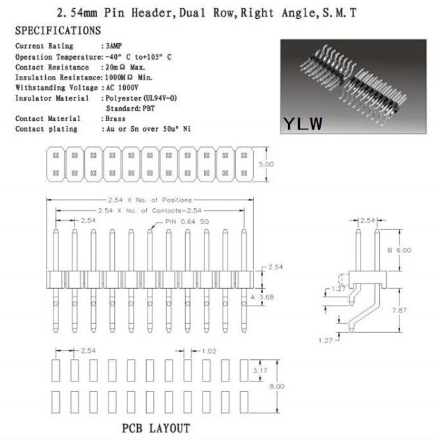 排针2.54mm Pin Header,Dual Row,Right Angle,S.M.T