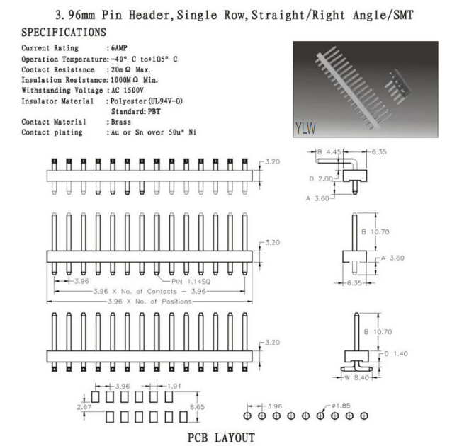 排针3.96mm Pin HeaderSingle RowStraight